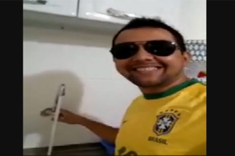 Homem abrindo as torneiras da cozinha e do banheiro para fazer “inveja” nos paulistas Reprodução/youtube